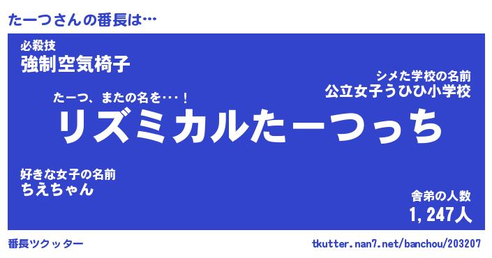 | 肩書あだ名 | 『たーつ御曹司』『たーつ国家主席』 |