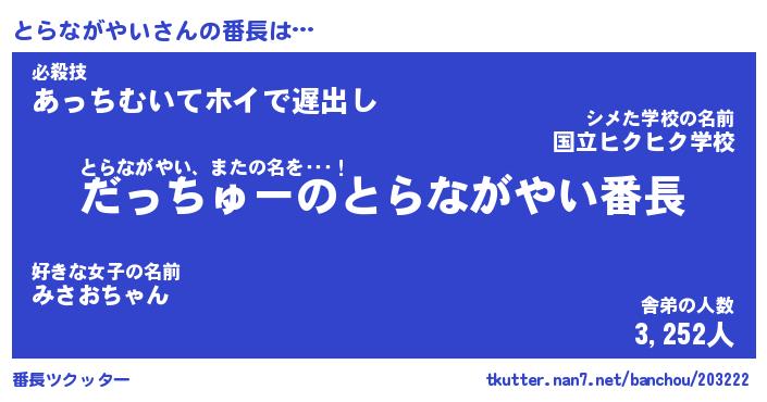 | 肩書あだ名 | 『とらながやい店長』『とらながやい塾長』 |