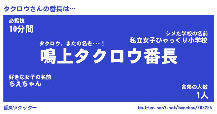 | 2回繰り返すあだ名 | 『タクタク』『タタクク』『おやおや』 |