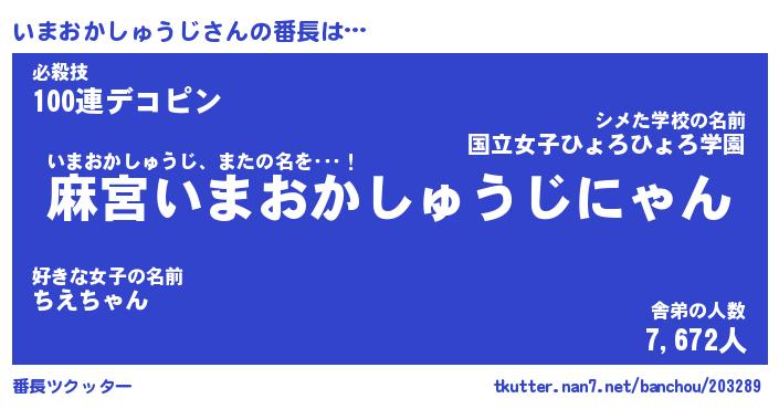 | ポケモン風あだ名 | 『イマチュウ』『イマオダネ』 |