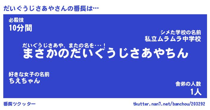 | 胡散臭い通販商品みたいなあだ名 | 『必ず成功する水晶球…その名も「だいぐうじさあや」』 |