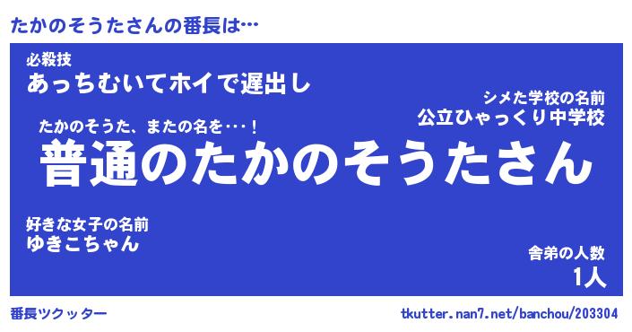 | 2回繰り返すあだ名 | 『たかたか』『たたかか』『いそいそ』 |