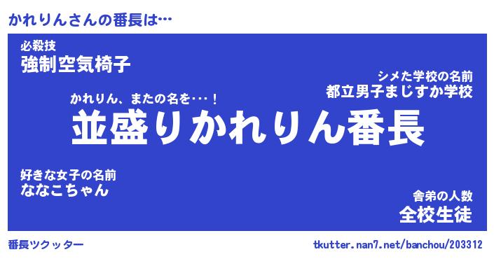 | 意味不明あだ名 | 『ペロリンかれりん』『永久保存かれりん』 |