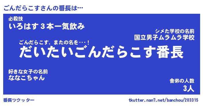 | ピコ太郎風あだ名 | 『ゴコ十郎』『ピゴ史郎』『ゴン四郎』 |