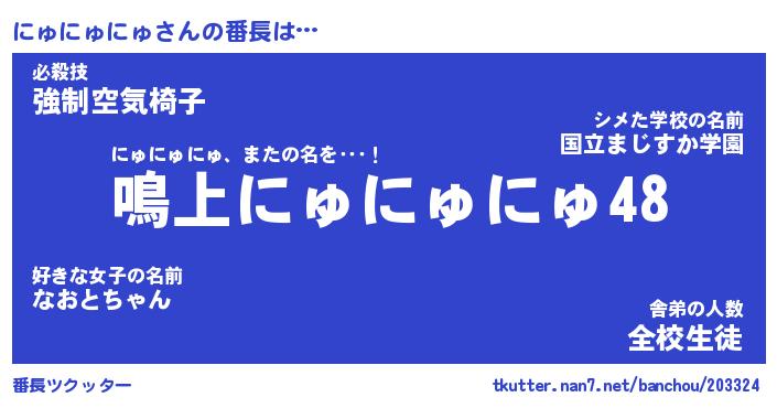 | ヘコむあだ名 | 『にゅもー』『つくし』『にゅ太郎』 |