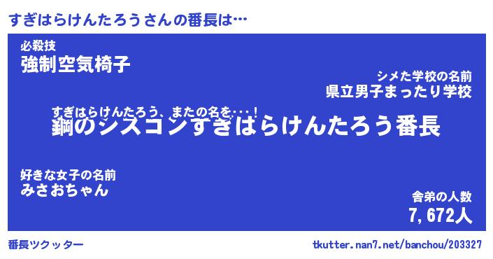 | 肩書あだ名 | 『すぎはらけんたろう御曹司』 |
