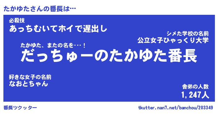 | 肩書あだ名 | 『たかゆた店長』『たかゆた大統領』 |