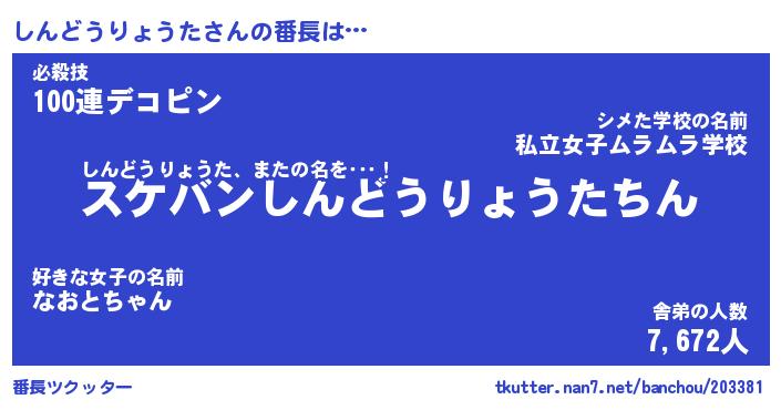 | ヒーロー風カッコイイあだ名 | 『スーパーシンドウリョウタ』 |