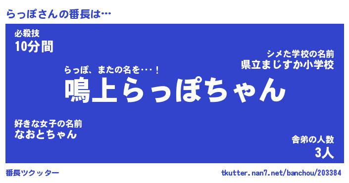 | 意味不明あだ名 | 『ペロリンらっぽ』『らっぽフォーエバー』 |