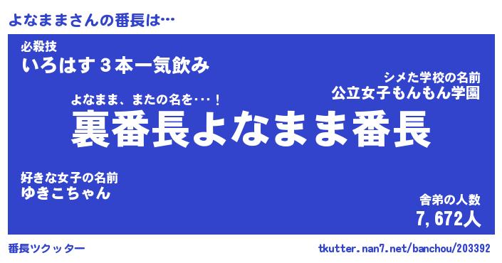 | 意味不明あだ名 | 『ペロリンよなまま』『永久保存よなまま』 |