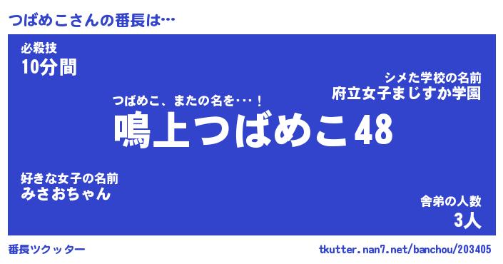 | ピコ太郎風あだ名 | 『ツコ次郎』『ピツ次郎』『ツバ四郎』 |