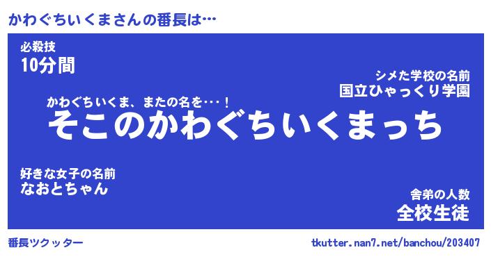 | 肩書あだ名 | 『かわぐちいくま御曹司』 |