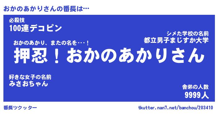 | 肩書あだ名 | 『おかのあかりCEO』『おかのあかり班長』 |