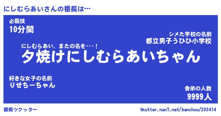 | 肩書あだ名 | 『にしむらあい御曹司』 |
