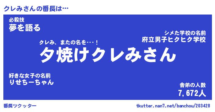 | ヒーロー風カッコイイあだ名 | 『スーパークレミ』『ウルトラクレみマン』 |