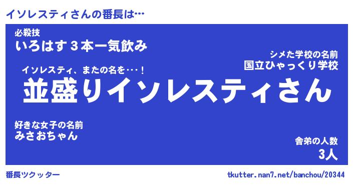 | ヒーロー風カッコイイあだ名 | 『スーパーイソレスティ』『幻影騎士イソ』 |