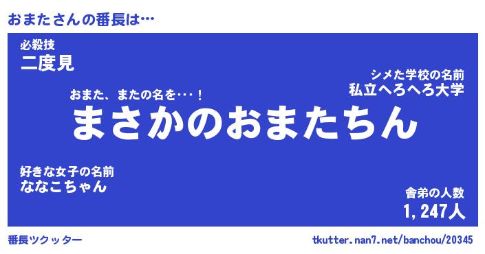 | 2回繰り返すあだ名 | 『おまおま』『おおまま』『にたにた』 |