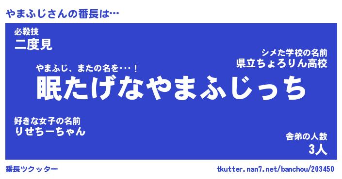 | 伝説のあだ名 | 『封印されしスナイパーやまふじ』 |