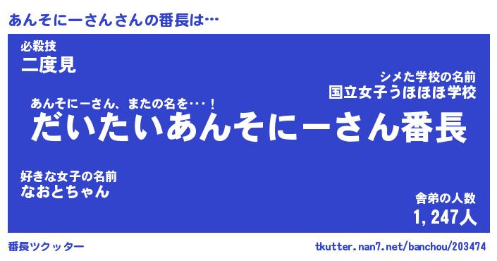 | ヘコむあだ名 | 『あんにー』『なまこ酢』『あんお』 |