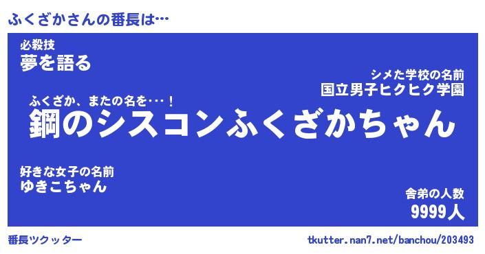 | ヘコむあだ名 | 『ふくにゅー』『つくし』『ふく太郎』 |