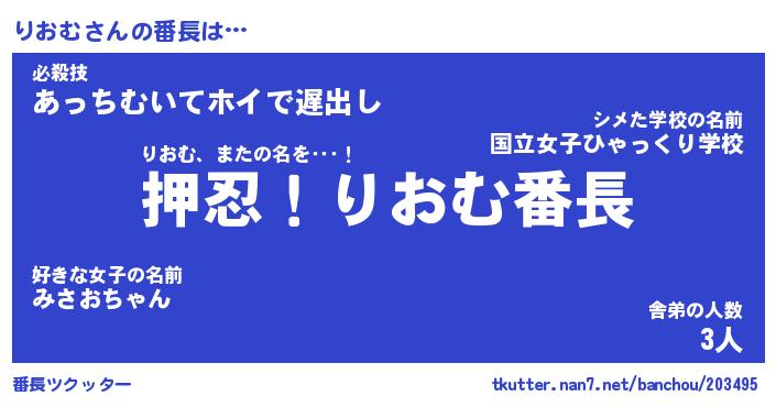 | 意味不明あだ名 | 『ペロリンりおむ』『りおむフォーエバー』 |