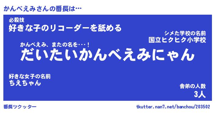 | 肩書あだ名 | 『かんべえみCEO』『かんべえみ国家主席』 |
