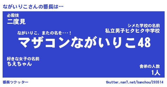 | ファンタジー風あだ名 | 『ナガフェル』『エターナルナガイリコー』 |