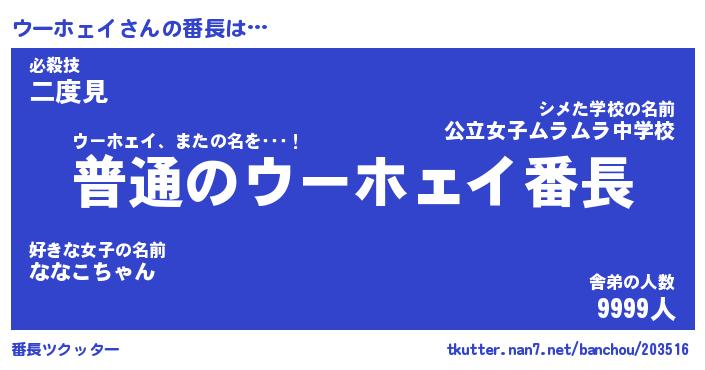 | ピコ太郎風あだ名 | 『ウコ十郎』『ピウ一郎』『ウー次郎』 |