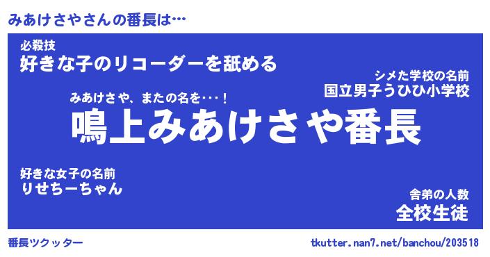 | ヘコむあだ名 | 『みあふぇ~』『酢こんぶ』 |