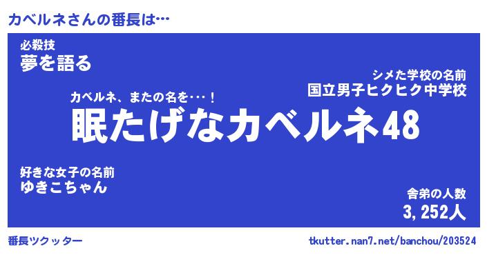 | ファンタジー風あだ名 | 『カベフェル』『エターナルカベルネー』 |