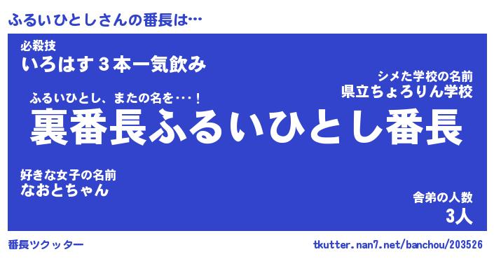 | ヘコむあだ名 | 『ふるにー』『なまこ酢』『ふる太郎』 |