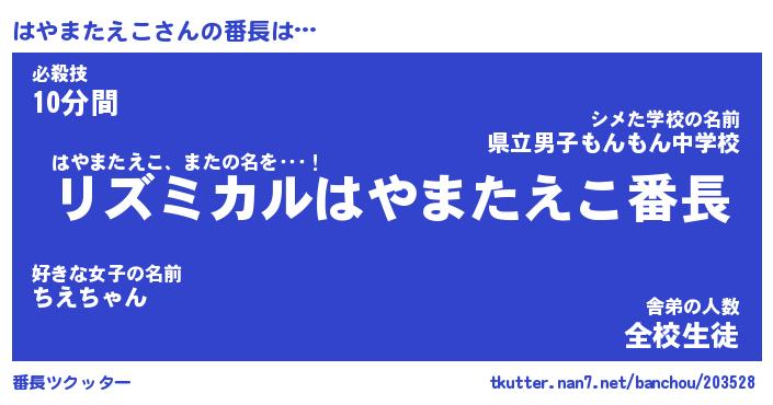 | 肩書あだ名 | 『はやまたえこ店長』『はやまたえこ校長』 |