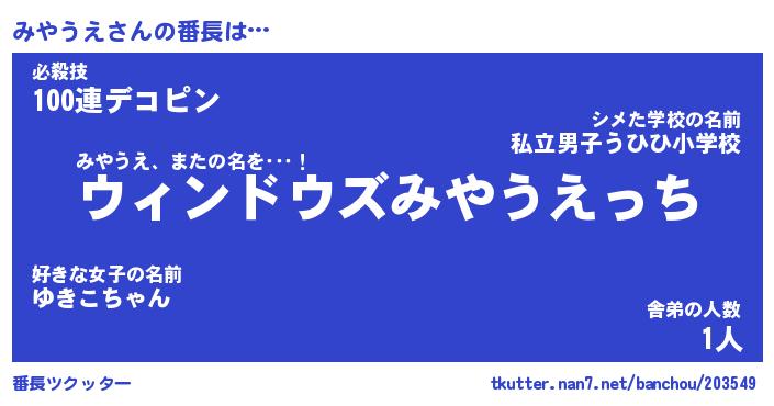 | 意味不明あだ名 | 『ペロリンみやうえ』『永久保存みやうえ』 |
