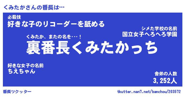 | ヘコむあだ名 | 『くみもー』『なまこ酢』『くみ太郎』 |