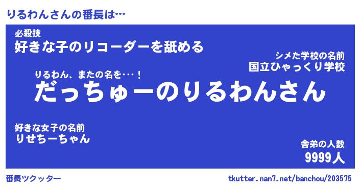 | 肩書あだ名 | 『りるわん御曹司』『りるわん国家主席』 |