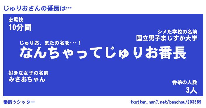 | 意味不明あだ名 | 『ペロリンじゅりお』『永久保存じゅりお』 |