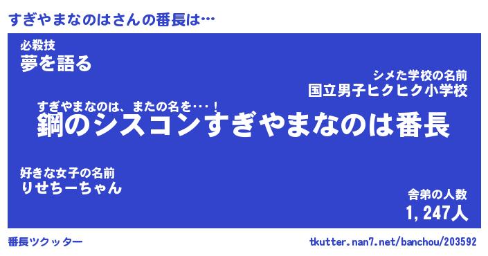 | 肩書あだ名 | 『すぎやまなのは御曹司』 |