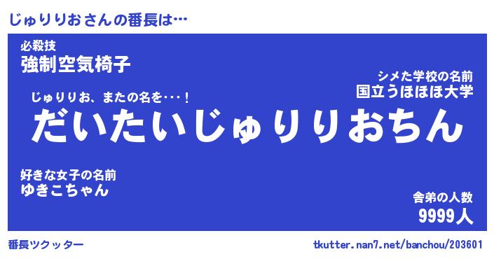 | 肩書あだ名 | 『じゅりりお社長』『じゅりりお国家主席』 |