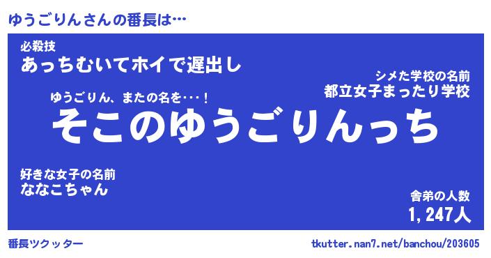 | ファンタジー風あだ名 | 『ユウフェル』『エターナルユウゴリンー』 |