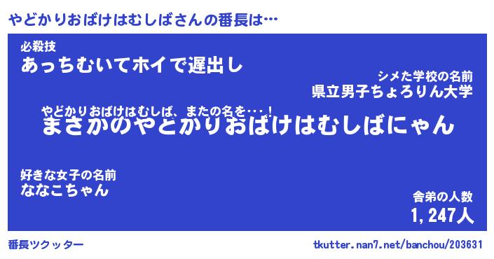 | 肩書あだ名 | 『やどかりおばけはむしば店長』 |