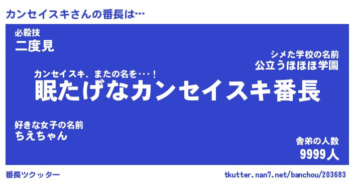 | 伝説のあだ名 | 『封印されしスナイパーカンセイスキ』 |
