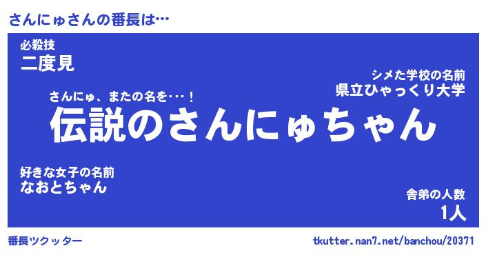 | 肩書あだ名 | 『さんにゅCEO』『さんにゅ総理大臣』 |