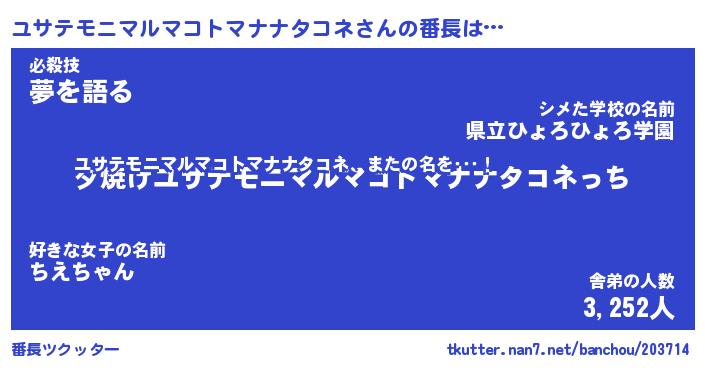 | 肩書あだ名 | 『ユサテモニマルマコトマナナタコネCEO』 |