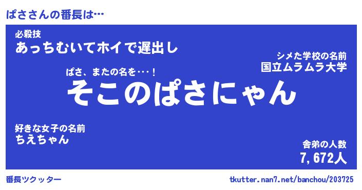 | 意味不明あだ名 | 『ペロリンぱさ』『ぱさフォーエバー』 |