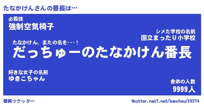 | ファンタジー風あだ名 | 『タナフェル』『エターナルタナカケンー』 |