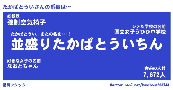 | 伝説のあだ名 | 『不死鳥のスナイパーたかばとうい』 |