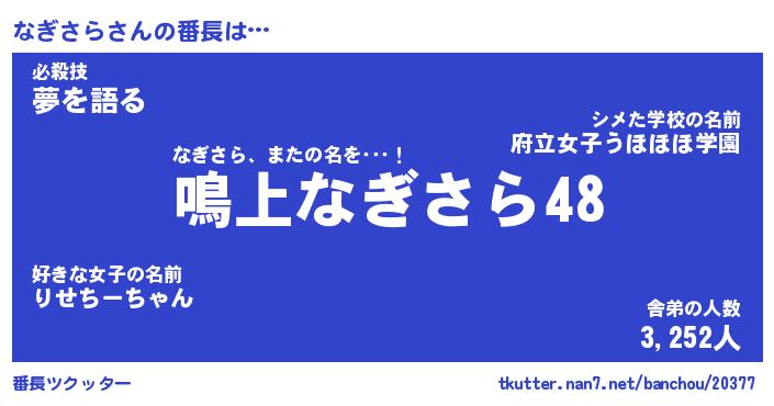 | 2回繰り返すあだ名 | 『なぎなぎ』『ななぎぎ』『なあなあ』 |