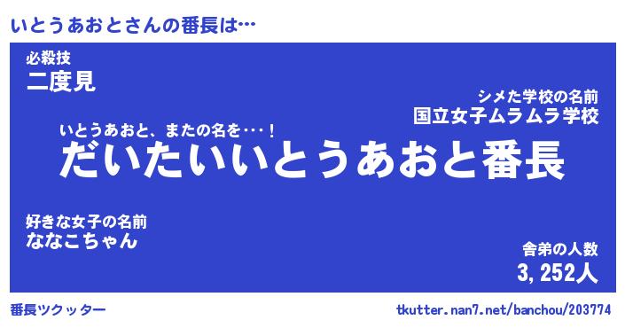 | 2回繰り返すあだ名 | 『いといと』『いいとと』『ぬるぬる』 |