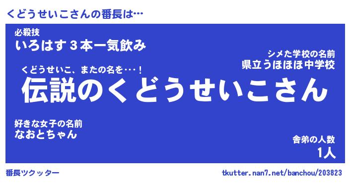 | ピコ太郎風あだ名 | 『クコ一郎』『ピク八郎』『クド四郎』 |