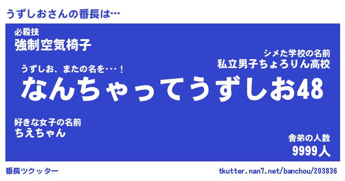 | 肩書あだ名 | 『うずしお社長』『うずしお総理大臣』 |
